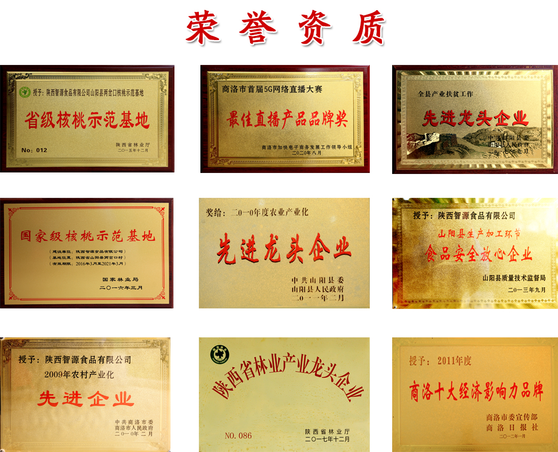 近年来,公司通过与陕西省轻工业研究设计院、西北农林科技大学等科研单位合作,先后研发出了“博汇牌”核桃软糖、核桃酥糖、琥珀桃仁、核桃油、香椿等系列产品。核桃软糖荣获第七届中国杨凌农高会“后稷金像奖”,琥珀桃仁荣获第十八届“后稷金像奖”,核桃软糖,核桃酥糖被评为“国家合格评定质量达标放心食品”、“中国优质食品”。2018年核桃软糖再次被省政府命名...